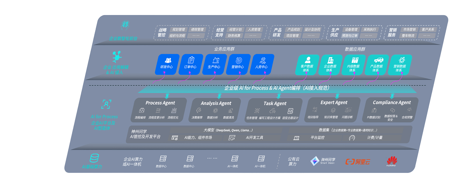 NG大舞台问学智车解决方案是一套基于AI技术的汽车行业智能化系统,,,覆盖从底层算力到顶层AI应用的全栈方案。。方案由算力层、、模型层和应用层组成:算力层,,,,方案支持多种一体机配置,,,,具备云端灵活部署、、、多云适配以及动态优化计算资源的能力;模型层,,NG大舞台问学平台版提供了企业级AI应用一站式构建与管理平台,,,,支持基于后训练强化技术的汽车企业专属模型的训练、、评测和运营;应用层,,NG大舞台问学DeepSeek版提供包括超级员工、、智能招采、、、、智能营销、、、智能客服、、AI for BI等一系列解决方案,,,可助力汽车行业实现数字化转型,,,,让管理更智能、、、响应更敏捷。。。。