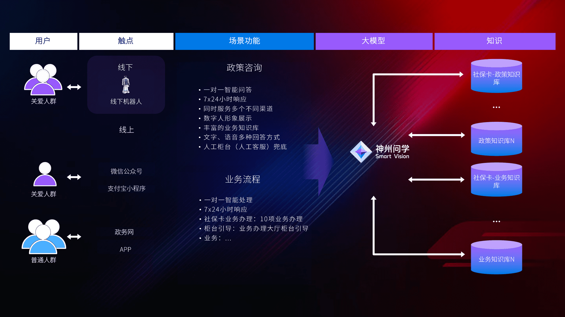 在服务大厅部署客服机器人,,,在线上应用和小程序配置客服数字人,,,724小时为群众解答常规问题,,,客服机器人无法处理的,,,,转现场人工处理。。